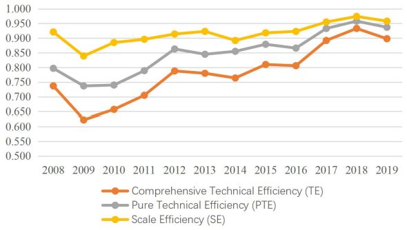 The development of sci-tech finance is conducive to promoting technological innovation and providing important technical support for comprehensively deepening reforms. Using the DEA-Malmquist model, a mainstream method for efficiency evaluation, this paper collects panel data on sci-tech finance of various provinces nationwide from 2008 to 2019, selects six input-output factors to measure the dynamic and static efficiency of sci-tech finance, and analyzes the results. It is concluded that the efficiency of China's sci-tech finance is mainly affected by pure technical factors; the eastern region performs better than the central and western regions; the total factor productivity of China's sci-tech finance has declined, while the central and western regions are developing well, along with other conclusions. Based on the empirical results, seven theoretical and practical factors are selected, and the Tobit model is used for empirical analysis. It is found that the level of internet development is significantly positively correlated with the efficiency of China's sci-tech finance and has a relatively large impact, while R&D expenditure investment is negatively correlated, and other factors are positively correlated. On this basis, suggestions for improving efficiency are put forward from three dimensions: strengthening innovation capabilities and technological progress, improving the management level of sci-tech and financial enterprises, and promoting the coordinated development of the eastern, central, and western regions.